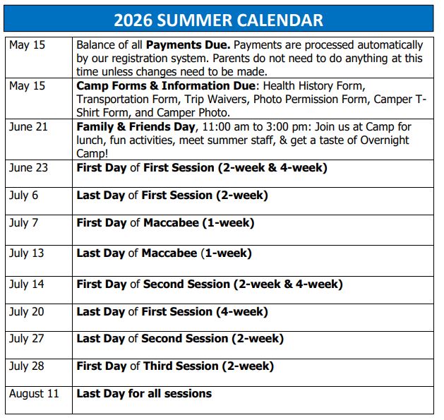 • Maccabee campers will camp one night under the stars at BB Camp!